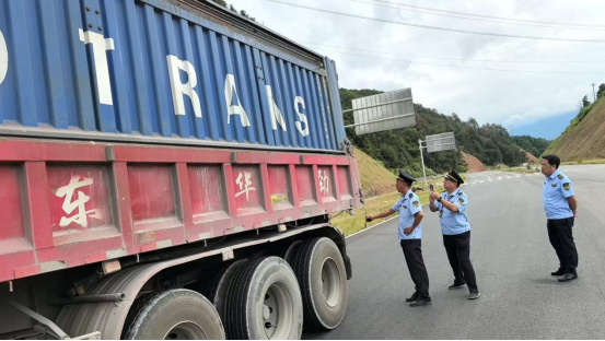 随后,执法人员在同一地点又发现第二辆涉嫌非法改装的车辆。该车同样是拖挂货车,经现场查验,该车在车尾加做了活动铁杆并擅自加高了车厢高度,与原车型不符。由于该车也未装载任何货物,执法人员对驾驶员进行了批评教育,责令其现场拆除活动铁杆,恢复车辆原状。