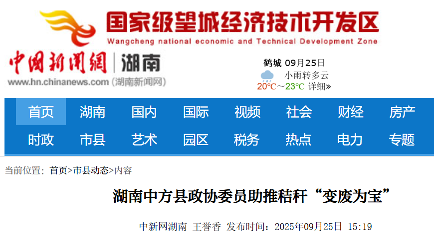中新网湖南新闻9月25日电 (王誉香)农田收获季后,大片大片的金色稻田被收割,遗留下来的秸秆成为大问题,而湖南省中方县政协近期组织县政协农业委、县农业农村局、市生态环境中方分局及部分政协委员,以“秸秆综合利用与焚烧管控”为主题开展专项踏察活动,助推秸秆“变废为宝”。