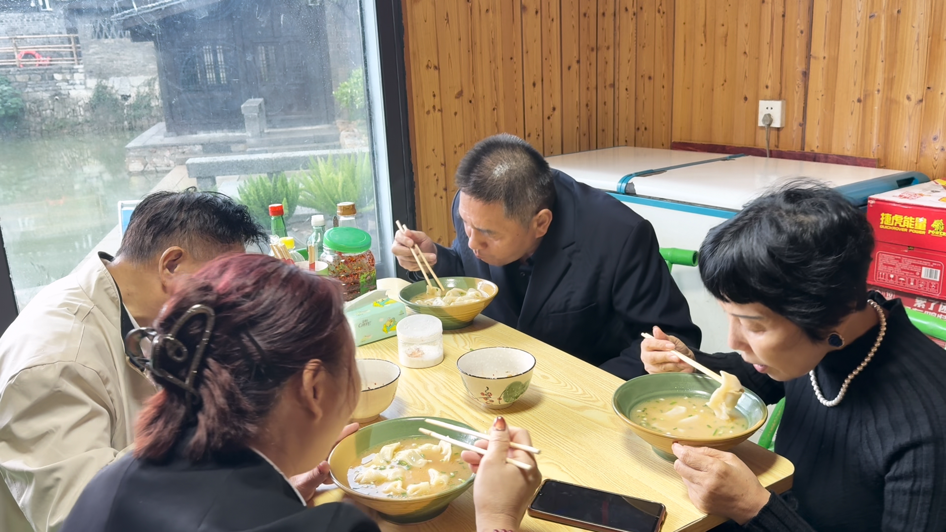 “皮薄馅鲜,汤味醇厚,这味道太地道了!”来自怀化市区的唐丽君和三位朋友刚结束用餐,忍不住连连称赞,直言下次还会再来打卡,大家都想尝尝这份藏在古村中的家常味道。