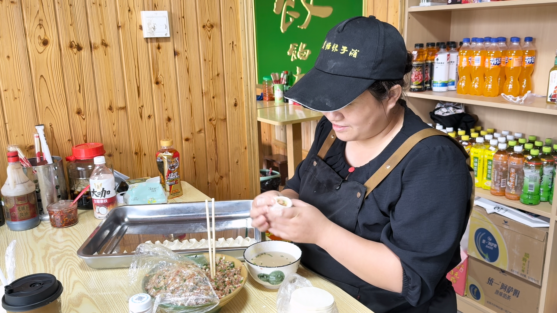“现在一天能卖1000多个饺子,尤其是周五到周日都忙得脚不沾地!” 店铺主理人潘归华一边包着饺子一边笑着说,和馅、捏合、折褶……手指翻飞间,一个个肚圆边齐的饺子就码满在托盘里,“旅发大会后店里效益涨了三成。”潘归华的丈夫周发补充道,络绎不绝的游客让原本不大的店面显得格外紧凑,刚出锅的水饺皮薄馅足,汤汁浓郁,香气吸引着来往游客。