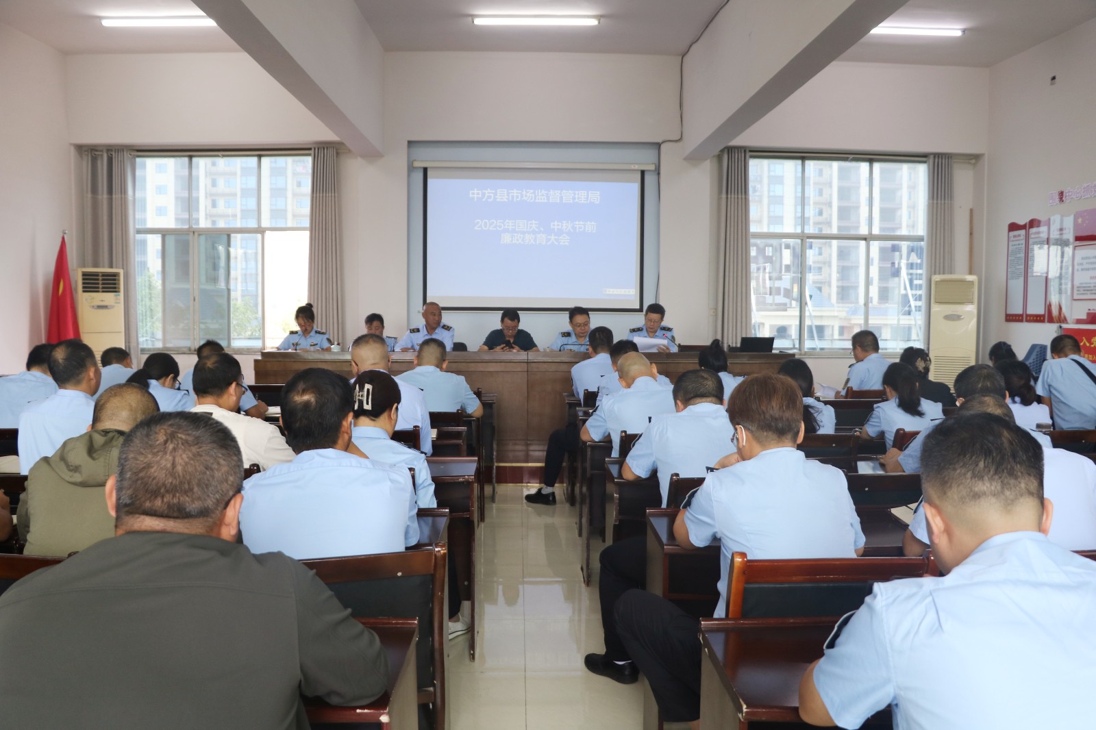 中方融媒9月30日讯(通讯员:欧一诺)国庆、中秋长假将至,为进一步增强干部职工廉洁自律意识,营造风清气正的节日氛围,9月28日,中方县市场监督管理局组织召开国庆、中秋节前廉政教育大会。局领导班子成员、全体干部职工参会。