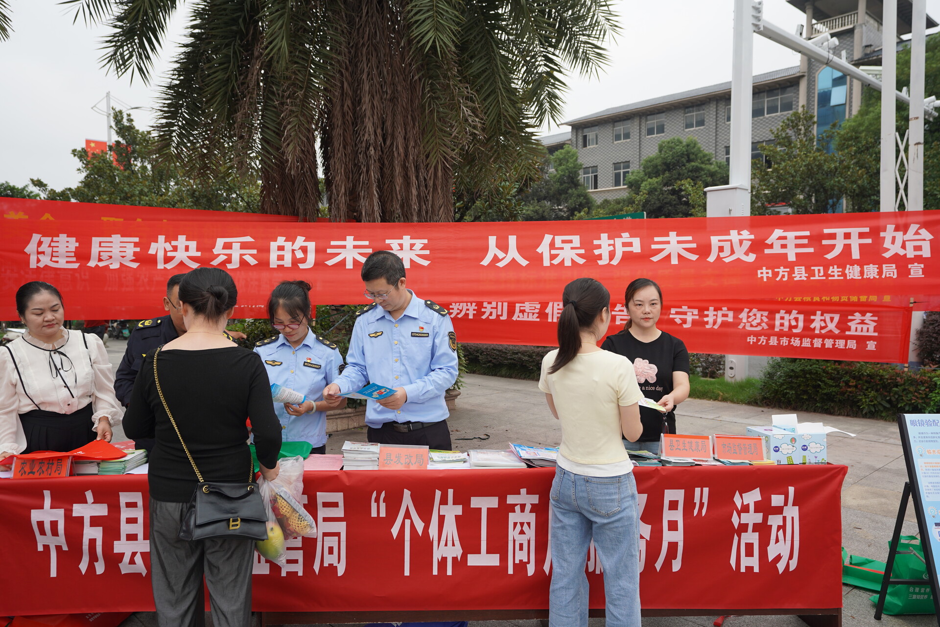 中方融媒9月30日讯(记者:石端)9月29日上午,中方县市场监督管理局联合县发展和改革局、县农业农村局、县卫生健康局,以“加强全面质量管理 促进质量强国建设”为主题,在联华广场共同开展“质量月”宣传活动,多部门协同普及质量知识,筑牢地方质量发展基础。