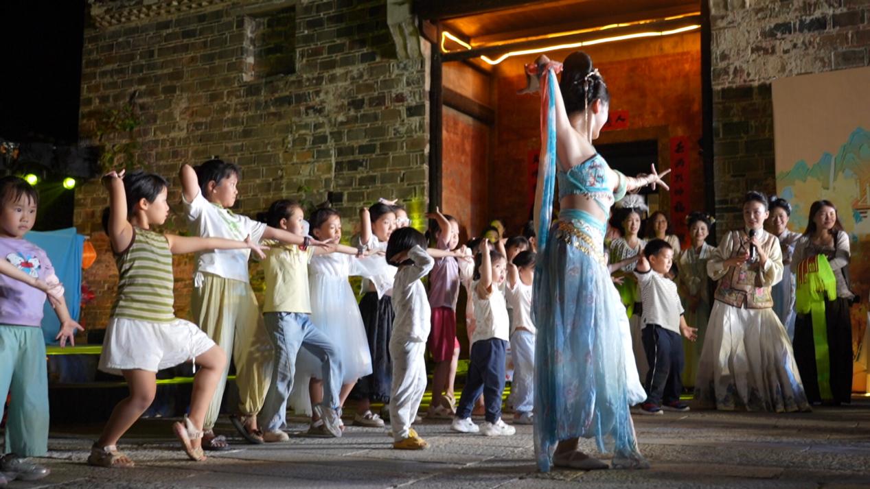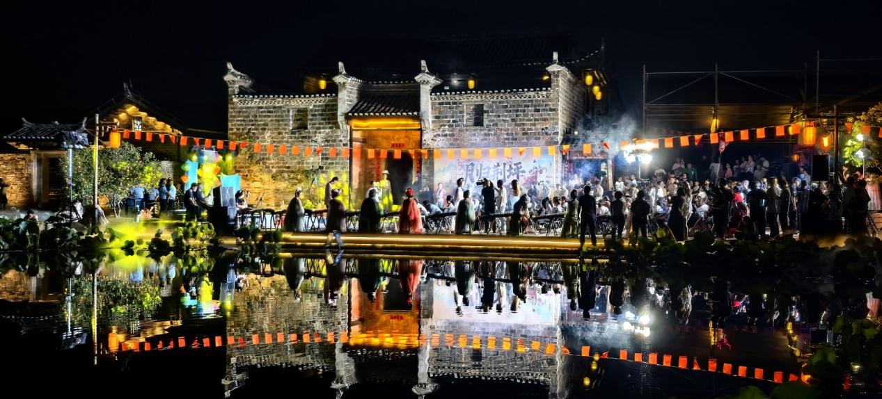 群舞《云宫迅音》拉开活动序幕,舞台上衣袂飘飘、舞姿曼妙,仿若仙境图景落于古村,瞬间抓住全场目光;随后《彩云追月》《花好月圆》《但愿人长久》等经典曲目轮番奏响,古韵悠扬的旋律迅速将现场氛围带入中秋佳节的诗意情境中,在团圆暖意中传递温柔思念与平和诗意,让现场充满怀旧温情。