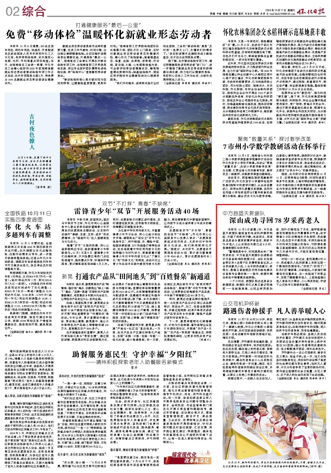 怀化日报|中方县蓝天救援队 深山成功寻回78岁采药老人