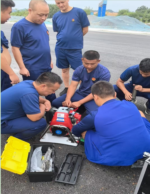 训练现场,队员们依次开展负重越野、灭火防护服、风力灭火器、2号工具、高压细水雾、水泵、水带等灭火装备的操作训练,有利于熟练掌握装备的使用方法和维护技巧。现场还组织了水泵接力协同战术、架设水泵、铺设水带、衔接水带等项目的训练,提高队员协同作战能力。此外,针对山区复杂地形,还专门模拟了“快速集结-火情侦察-科学布防”的全流程演练,确保一旦发生火情,能在最短时间内响应、最快速地控制火势。