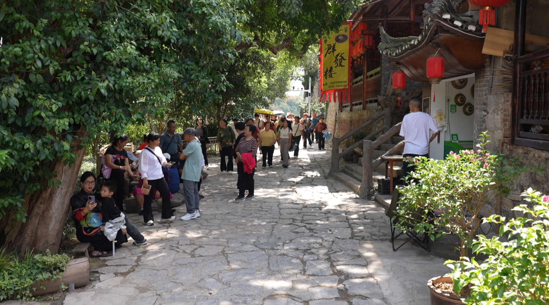 中方融媒10月17日讯(记者:蒲书琴) 青石巷陌,诉说百年沧桑;古树参天,荫庇一方净土。这个秋天,新晋为国家4A级景区的中方县荆坪古村,正迎来一场人气鼎沸的“焕新”热潮。根据客流摄像头监测大数据建模分析,第五届湖南旅发大会重点打造的城市文旅会客厅“一轴四点”项目在“双节”假期累计接待游客占全市监测点客流总量的35.99%,其中,荆坪古村迎来爆发式增长,客流同比飙升64倍,成为假期“黑马”景点。