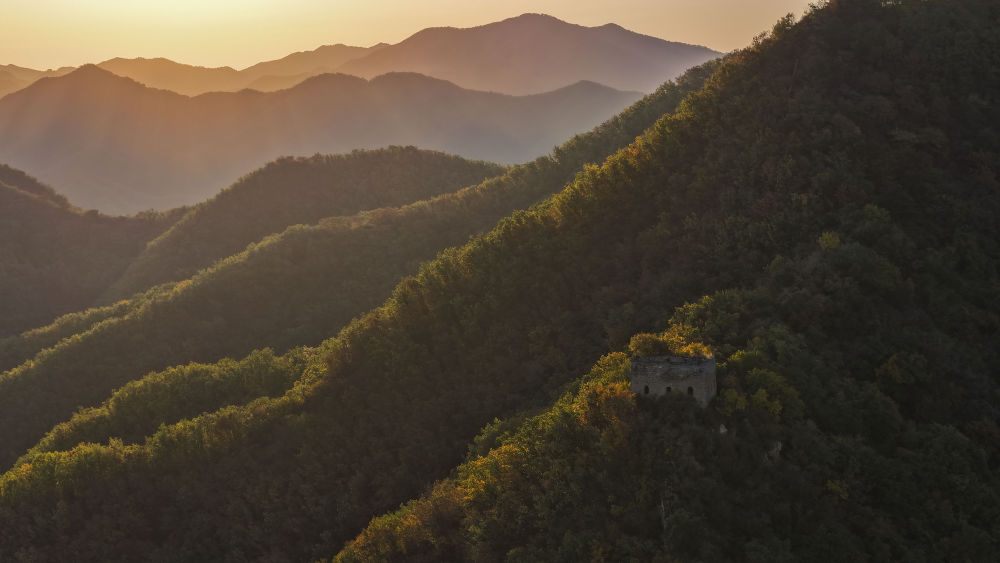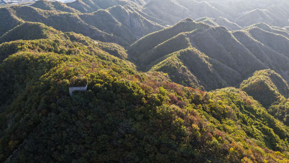 ↑ 10月18日在河北省唐山市迁西县上营镇拍摄的青山关长城秋景(无人机照片)。新华社发(刘满仓摄)