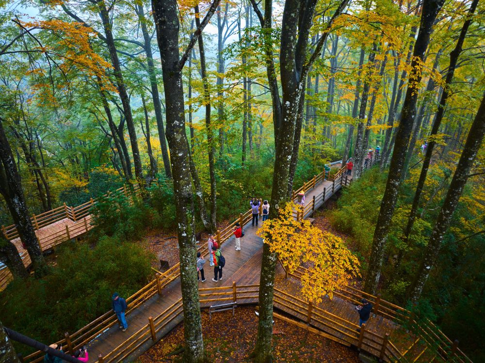 ↑ 10月18日,游客在四川省光雾山风景区的天然画廊畅游。新华社发(付海旭摄)