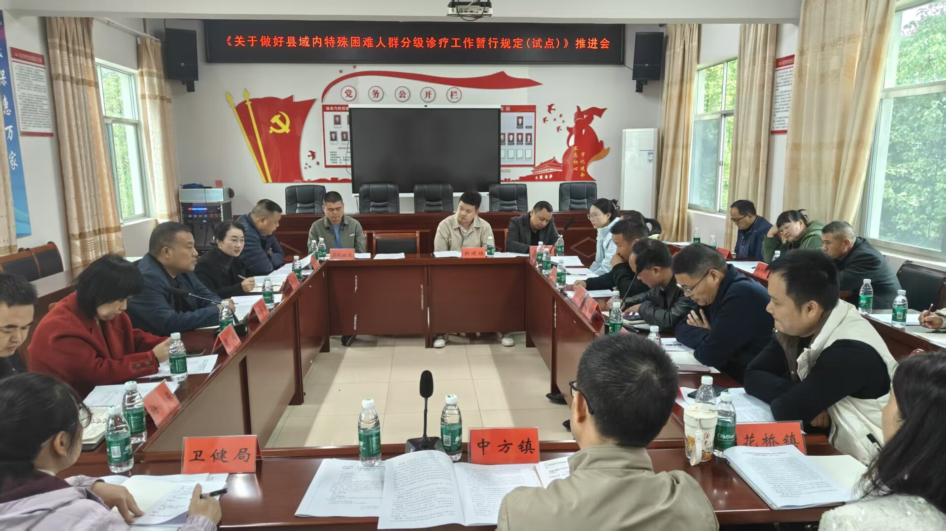 中方融媒10月21日讯(记者:王子豪 通讯员:杨求英)10月21日,中方县医疗保障局在县医保局会议室组织召开《关于做好县域内特殊困难人群分级诊疗工作暂行规定 (试点)》推进会。围绕医保管理、医疗机构能力提升及特殊困难人群服务优化展开讨论,强调政策落实、资源下沉和台账建设等重点工作。县医保局、县卫健局等相关单位,各镇、村相关工作负责人,敬老院运营方负责人、卫生院院长及村医代表参加。