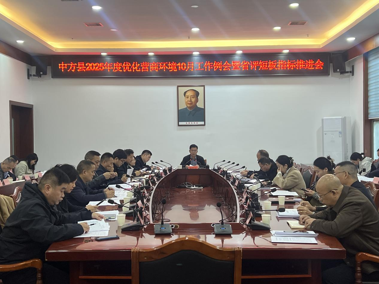 中方融媒10月22日讯(记者:梁洁)10月22日,中方县2025年度优化营商环境10月工作例会暨省评短板指标推进会在县行政中心五号会议室召开,县委常委、常务副县长杨志初主持,县直相关单位负责人参加。