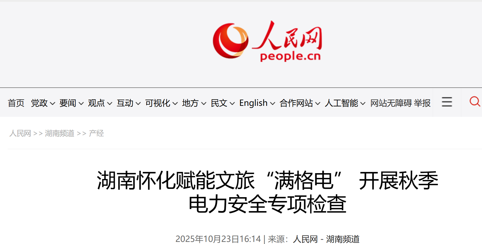 人民网|湖南怀化中方:赋能文旅“满格电” 开展秋季电力安全专项检查