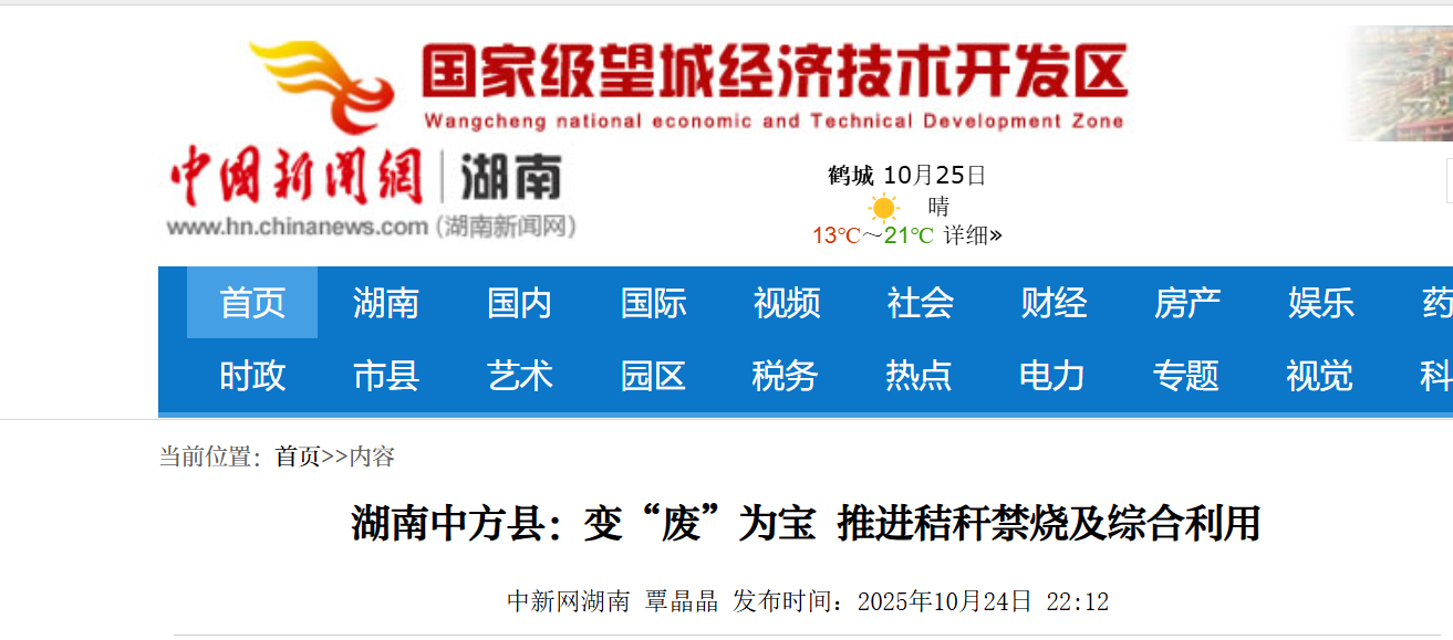中新网湖南新闻10月24日电 (覃晶晶)在湖南省怀化市中方县新建镇广袤的田野上,曾经被视为农业废弃物的秸秆,如今正经历着一场华丽转身——从田间地头的“烫手山芋”变成助力乡村振兴的“绿色宝藏”。