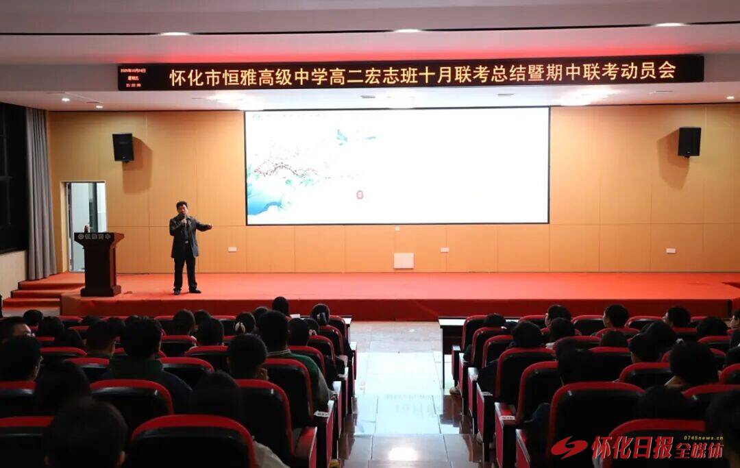 10月24日21时,怀化市恒雅高级中学高二宏志班召开十月联考总结暨期中备考会,由高二年级副主任邓晓波主持,师生代表参会。