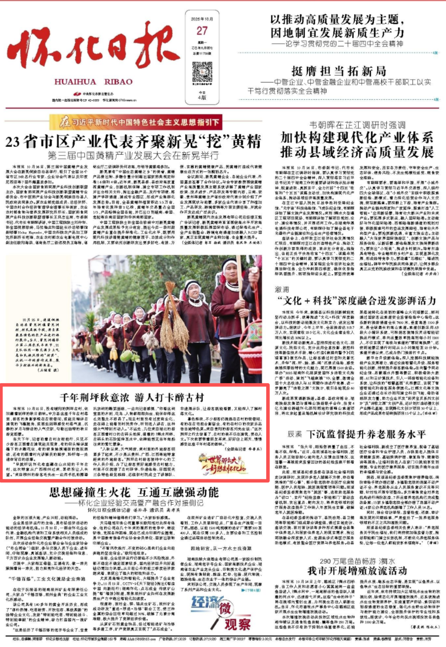 怀化日报头版|千年荆坪秋意浓 游人打卡醉古村