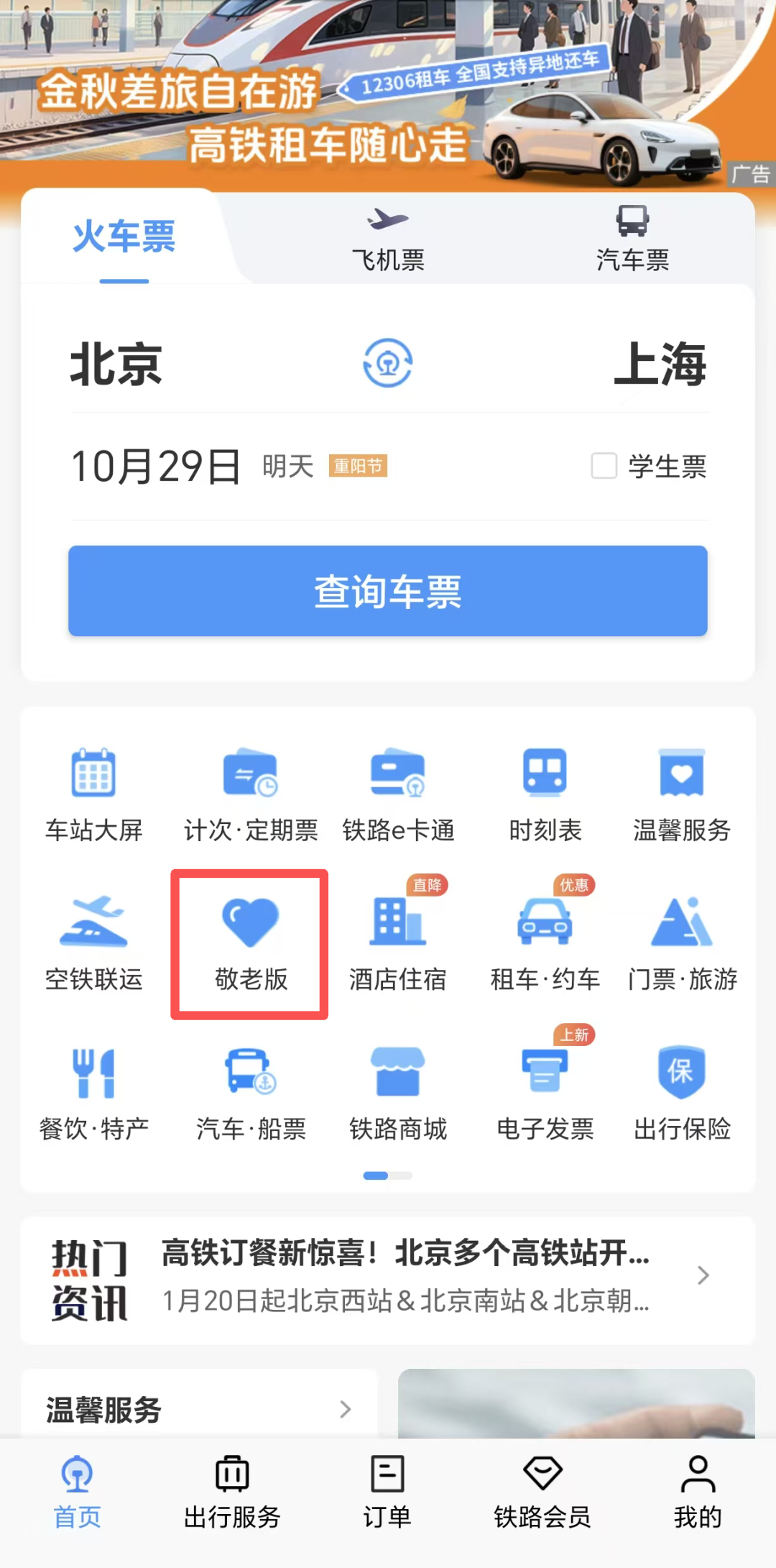 铁路12306App推出了“敬老版”