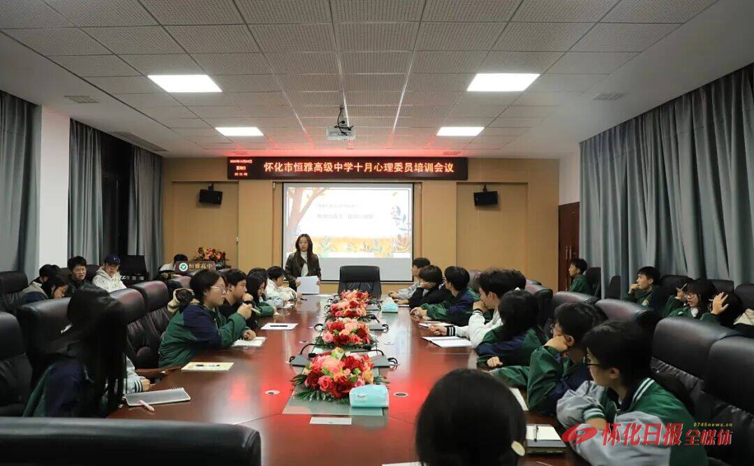 为进一步优化校园心理支持环境,提升心理委员的朋辈辅导能力,10月26日,怀化市恒雅高级中学心理咨询室组织全体心理委员,开展了以《情感的港湾 ——接纳与理解》为主题的专题培训,为校园心理健康防线筑牢坚实基础。