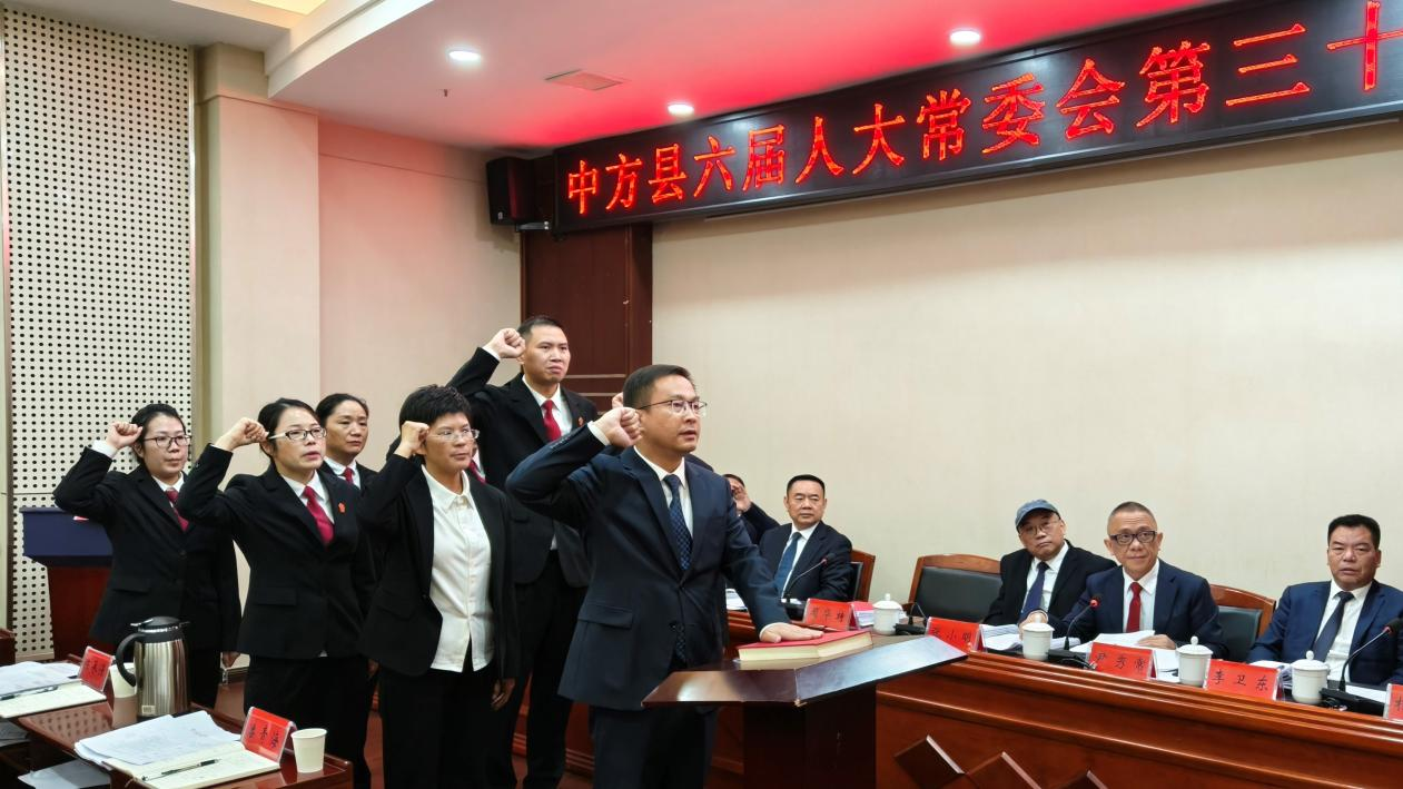 会议听取并审议了有关人事事项的报告、说明及拟任职人员发言,票决通过了人事任免案。决定任命周华特为中方县人民政府副县长,决定周华特副县长为中方县人民政府代理县长。张必忠向周华特及其他被任命人员颁发任命书,周华特及其他被任命人员进行了宪法宣誓。