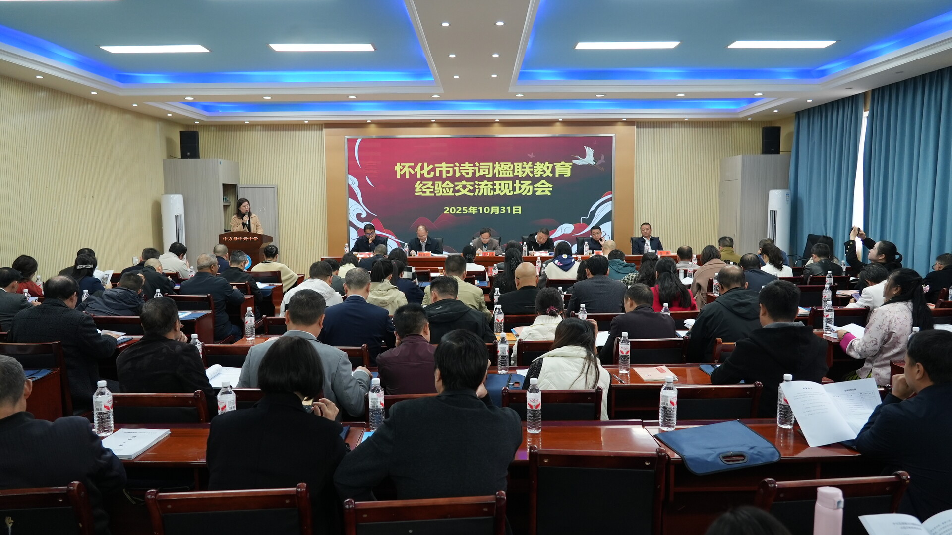 中方融媒10月31日讯(记者:张言)10月31日,怀化市诗词楹联教育经验交流现场会在中方县中兴中学成功举行。市文联、市教育局、全市各级文联、教育主管部门、诗词楹联协会及各学校负责人等九十余名代表齐聚一堂,围绕诗词楹联教育的实践与推广展开交流。
