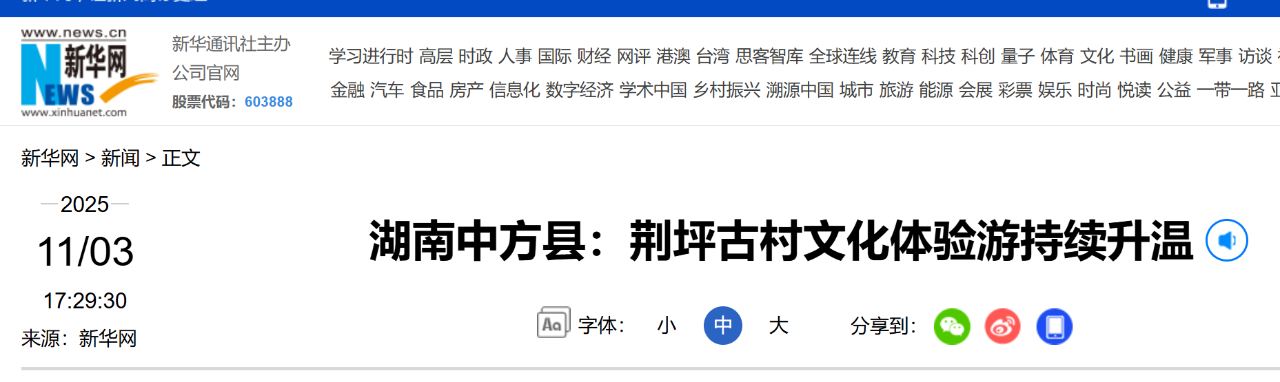 中方县荆坪古村景区运营管理中心负责人姜海斌表示:“近期游客量显著增加,每天不到上午十点,停车场的大巴区域就已停满。众多观摩团、旅行团慕名而来,专程体验古村的‘慢生活’。正如老话所说‘客进旺家门’,旺盛的人气也为古村带来了新的活力。”(陈攀)