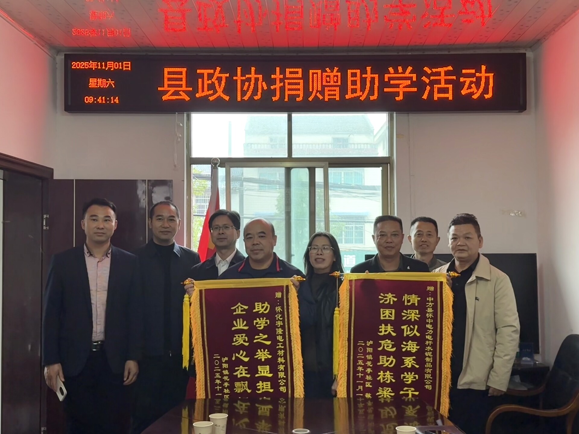 中方融媒11月1日讯(记者:谢姝妍)11月1日,中方县泸阳镇花亭社区暖意融融。县领导刘秋香、杨英宽带队,携手中方县怀中电力电杆水泥制品有限公司、怀化宇隆电工材料有限公司,前往泸阳镇花亭社区开展上门助学活动,为2名困难家庭学子送去关怀与资助。