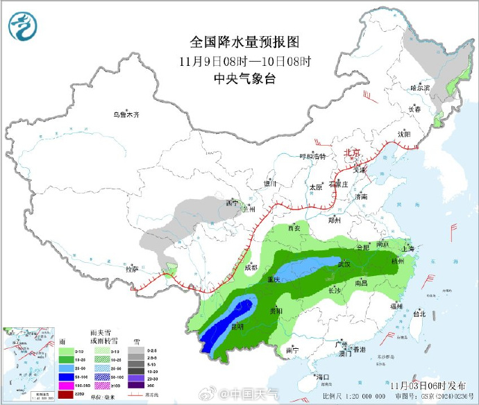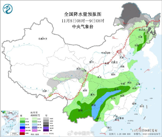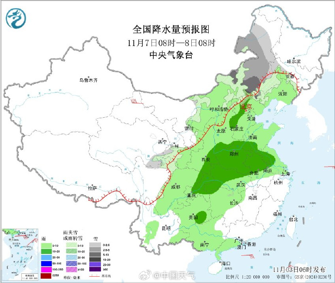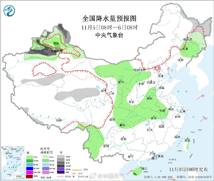 这股冷空气不仅带来降温,还会制造大范围雨雪天气。中央气象台预计,5-8日我国自西向东有大范围雨雪天气过程,新疆、内蒙古、黑龙江等地海拔较高地区为小到中雪或雨夹雪,部分地区大到暴雪,其他地区以小到中雨为主,西南部分地区有大雨。