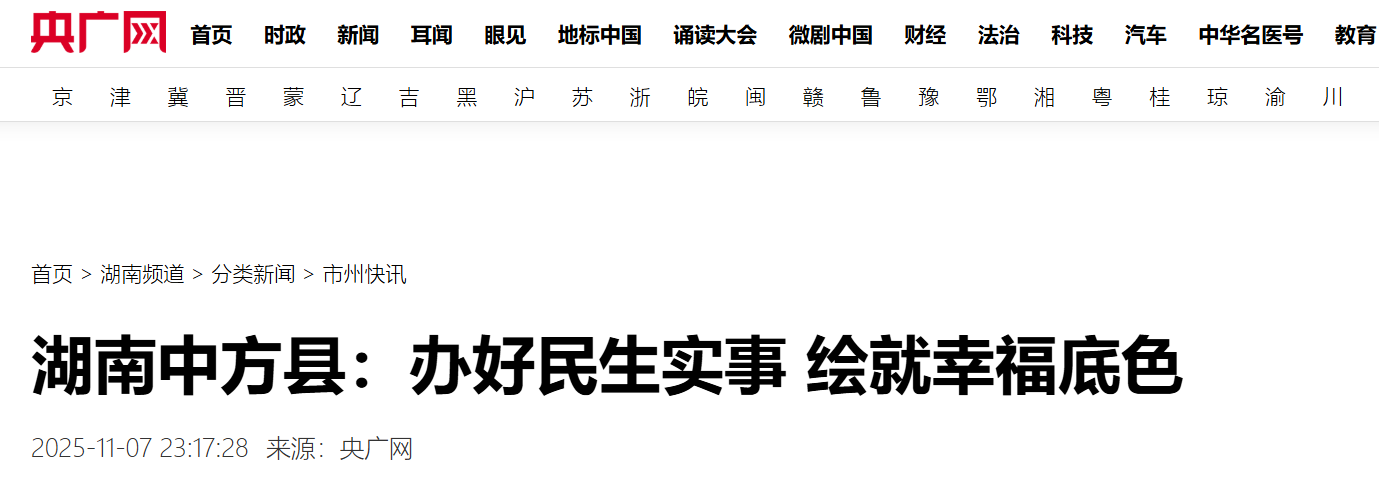 央广网|湖南中方县:办好民生实事 绘就幸福底色
