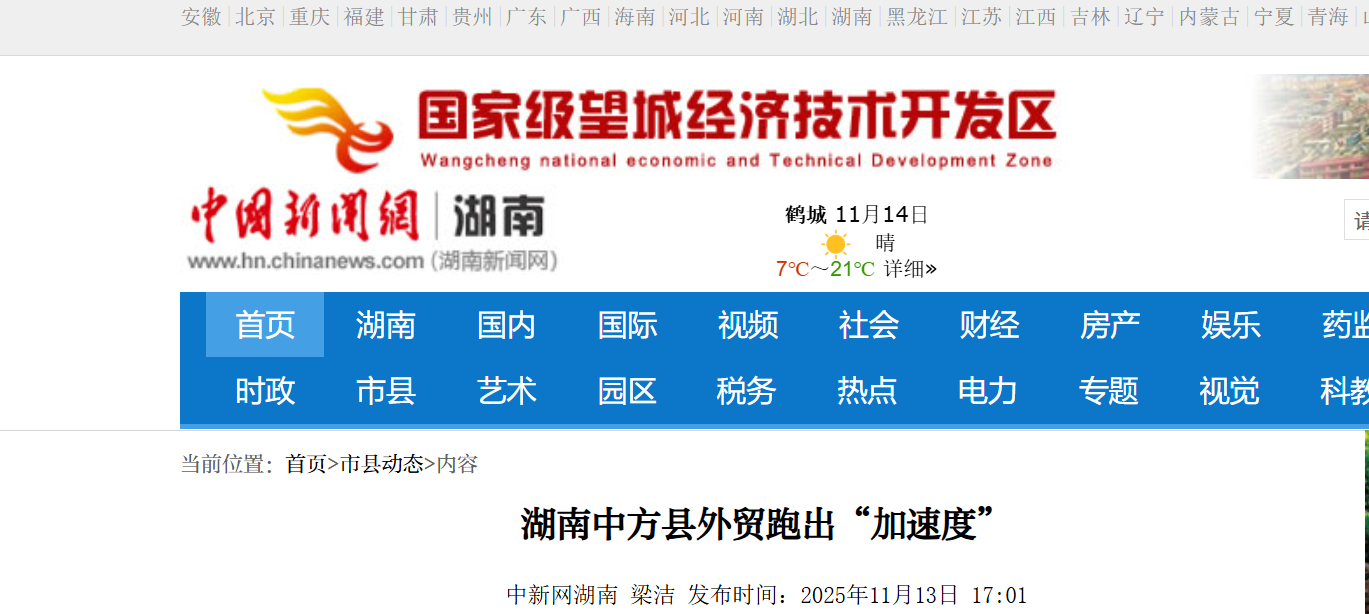 2025-11-14 08:33:23          来源:中新网湖南 | 编辑:杨丽群 |          浏览量:1480