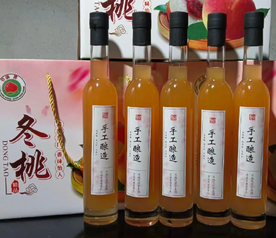在这一思路指引下,冬桃酒加工项目应运而生。通过精心筛选、恒温发酵、精准蒸馏与长期陈酿等一系列标准化流程,成功打造出口感醇厚、风味独特的冬桃酒系列产品,提升了产品附加值。与此同时,为破解产品“藏在深闺人未识”的难题,板山场村党支部积极拓展“直播+电商”等销售渠道,推动产业“触网升级”,推动冬桃酒走向全国市场,完成了从“论斤卖鲜果”到“按瓶售精品”的转变,真正实现了“一颗冬桃”的价值跃升。