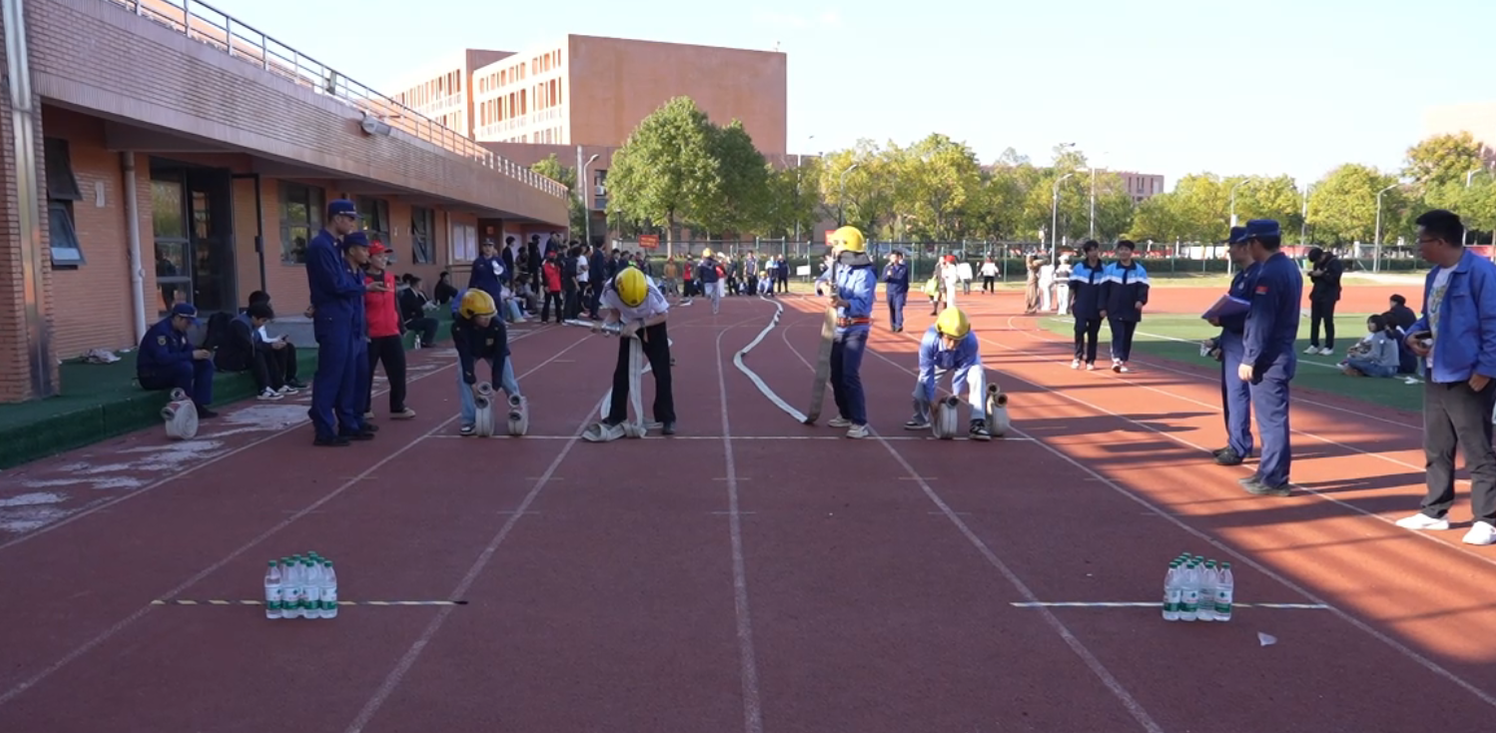 区别于传统消防知识宣讲,本次运动会创新设置四大特色环节,让消防安全教育 “活” 起来。“火眼金睛之‘隐患狙击战’” 中,参赛队员需在模拟校园场景展板上快速识别电器使用不当、插线板超负荷等常见火灾隐患,考验消防安全观察力;“生死时速之‘水带保龄球’” 环节,队员们在指定距离内精准抛出消防水带击倒模拟 “火源” 的水瓶,既锤炼了消防装备使用技巧,又提升了应急反应能力;“生命通道之‘烟雾迷宫突围’” 通过搭建模拟烟雾封闭通道,让队员们在低能见度环境下练习弯腰捂鼻、沿墙撤离等正确逃生动作,沉浸式感受火场逃生的紧张氛围;“生命速递之‘英雄使命’” 项目中,队员们接力运送模拟 “伤员” 道具,深刻体会消防救援 “与时间赛跑” 的责任担当。