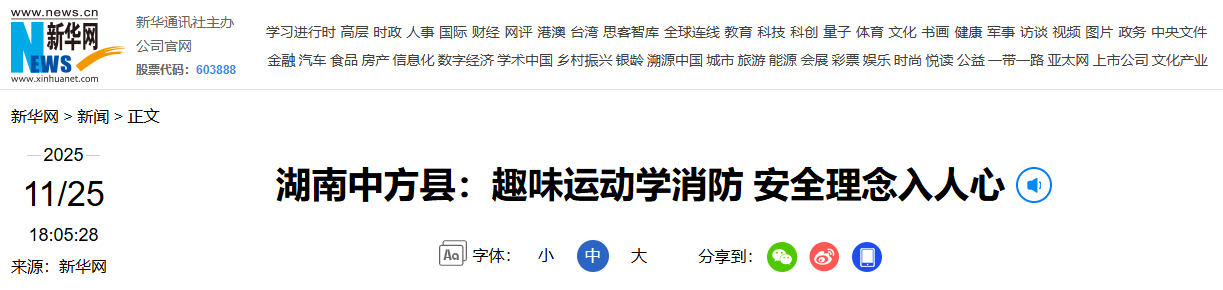 新华网|湖南中方县:趣味运动学消防 安全理念入人心