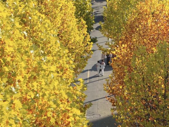 来自芷江的摄影爱好者周晓杰正操控无人机航拍全景,他说,自己每年都会来中方拍摄秋冬景致,“梧桐大道的金黄、银杏路的‘黄金铠甲’,每一处都特别出片,我们自发组队来创作,就是想把怀化的美景宣传出去。”