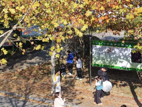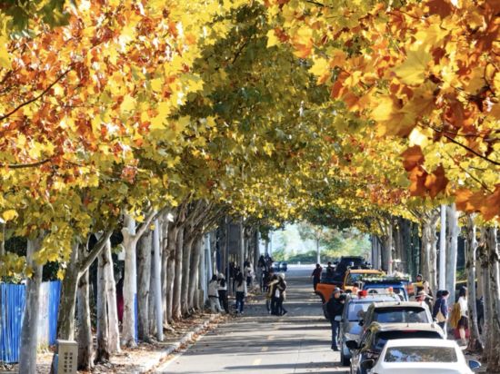 在梧桐大道上,处处都是热闹的身影,年轻情侣依偎在树旁定格甜蜜,摄影爱好者架起“长枪短炮”捕捉光影变幻,还有家长带着孩子捡拾落叶做手工,清脆的笑声与快门声交织在一起。