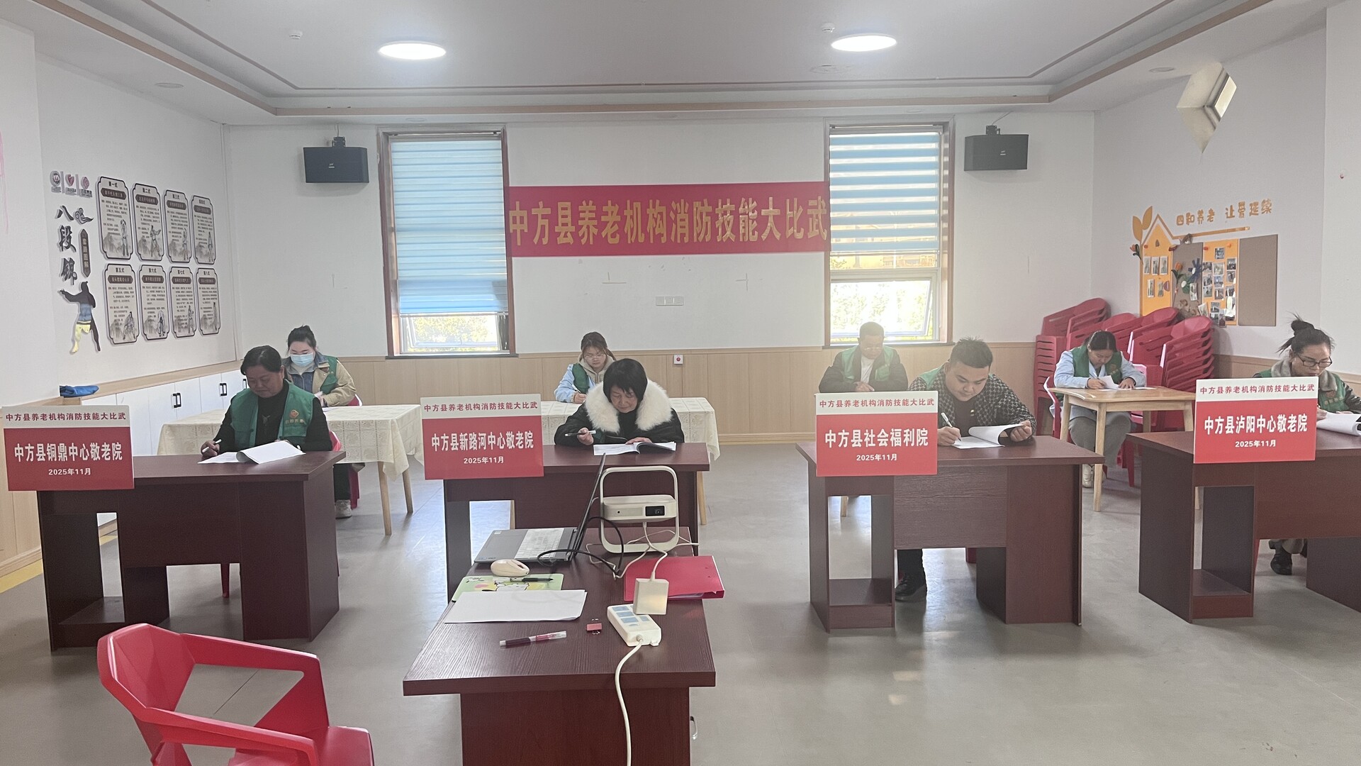 中方融媒11月28日讯(记者:王子豪 通讯员:彭玲)为响应2025年全国“消防宣传月”“全民消防、生命至上——安全用火用电”主题号召,11月28日,中方县养老机构消防技能大比武在中方县社会福利院举行。中方县社会福利院、泸阳中心敬老院等四支队伍同台竞技,以赛促学筑牢养老服务安全防线。
