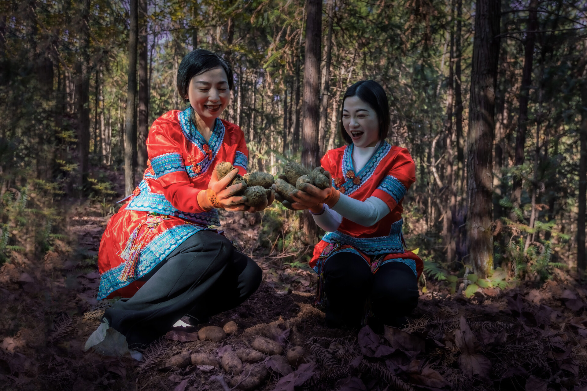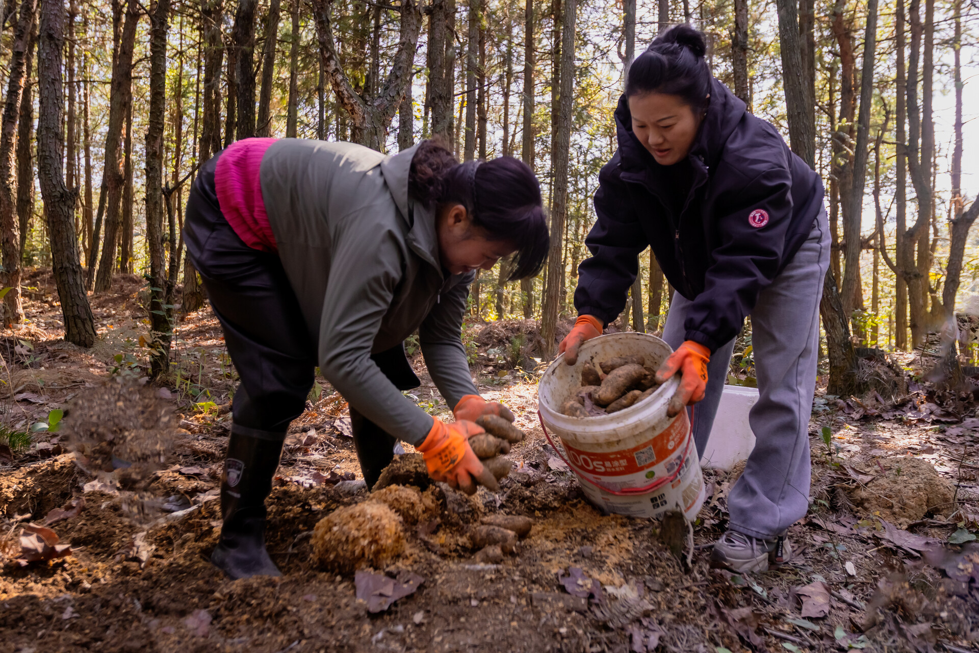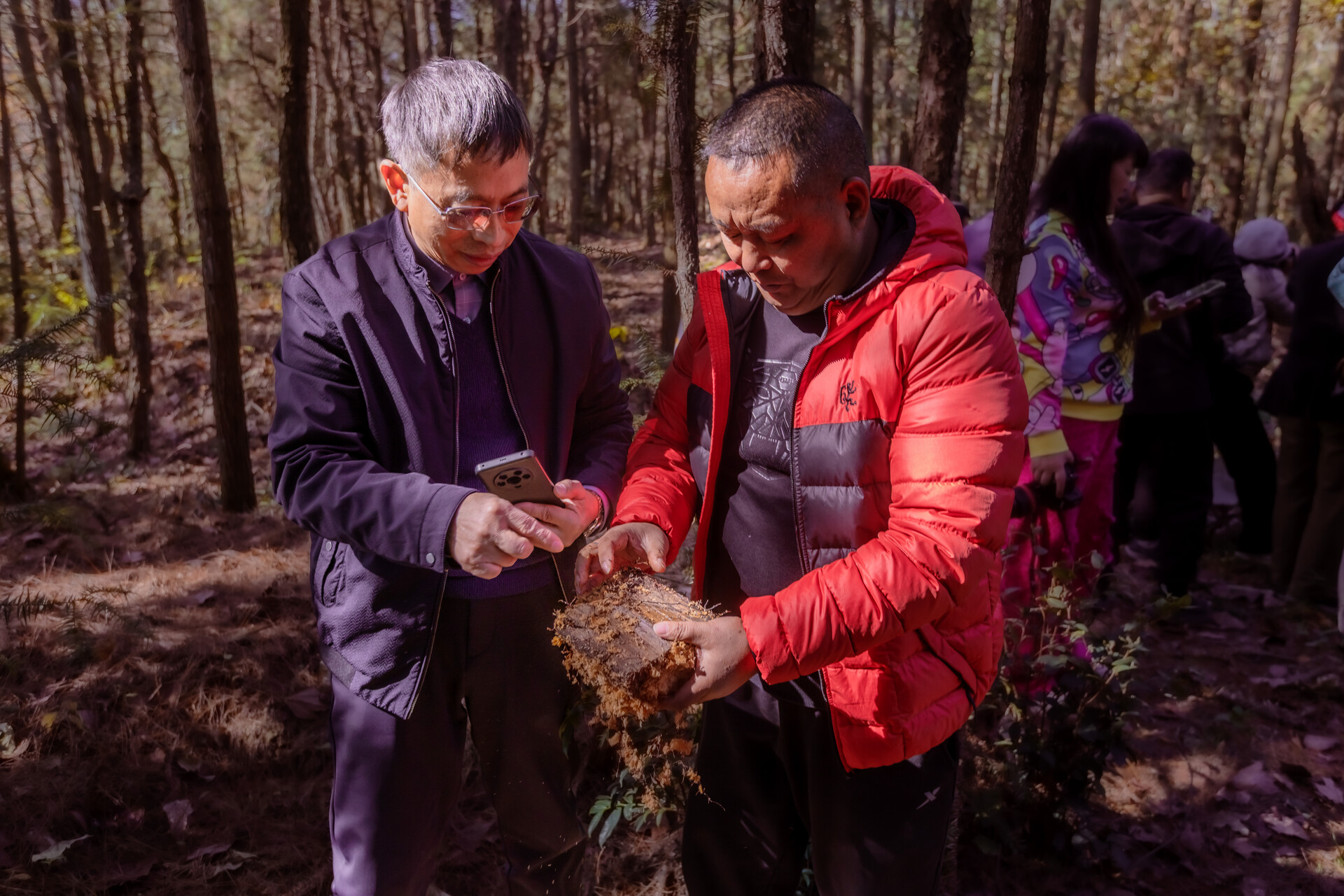 仪式结束后,摄影家们走进泸阳镇海拔800多米的雪峰山脉鸡公坡村的深山密林中,镜头聚焦当地村民采收天麻的丰收场景。据悉,从2022年开始,当地村民董明、周细美等人在适应天麻生长的高山密林深处种植林下窖藏乌天麻。今年种植面积达3000多亩,近10万窖,成为全省最大的生态天麻种植基地。今年天麻喜获丰收,极大地带动了当地集体经济发展和农民增收致富。