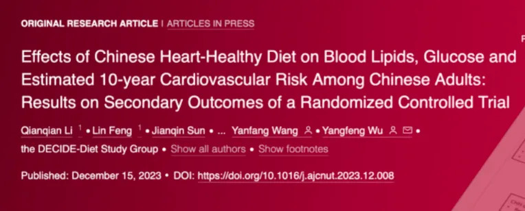 2023年,武阳丰教授等相关人员刊发在《美国临床营养学杂志》的研究显示,对患有轻度高血压的人,只要4周坚持吃“中国心脏健康饮食”,就能有效降低总胆固醇和得心脏病的风险,对控制血糖也可能有帮助