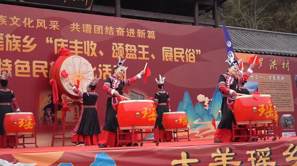 活动现场,文化传承的脉络清晰可见。开幕式上,庄严的盘王颂词诵读声中,瑶族同胞以古朴礼仪感恩先祖庇佑,展现对传统文化的虔诚敬畏;文艺汇演中,《开鼓·颂盘王》以激昂鼓点勾勒瑶族先民迁徙图景,竹杆舞、农耕风情秀则将生产生活场景与艺术表达相融,每一个舞姿、每一段吟唱都蕴含着民族智慧。