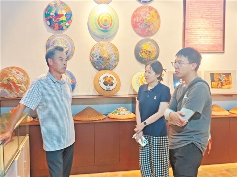 中方县斗笠协会会长潘云余向年轻人介绍“中方斗笠”
