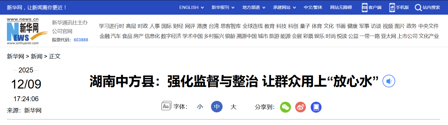 今年7月,中方县纪委监委在梳理12345投诉信息中发现,中方镇牌楼村、陈家湾村及桐木镇部分村组农村供水投诉频发,存在频繁停水、水质浑浊等问题,严重影响群众生活。