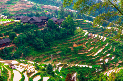 春日瑶乡,是一帧晕染生机的水彩。层层梯田依山而卧,嫩秧破土而出,浅碧禾苗顺着田垄的弧度缓缓铺展,风过处漾起叠叠绿浪,裹挟泥土湿润气息漫过村寨、漫过心尖。山间花事正盛,粉桃吐艳、白梨凝霜,映山红如丹霞漫卷,点缀青黛山峦,织就绚烂花海。偶有云雾如轻纱笼住山野,花海在朦胧中若隐若现,暗香浮动,恍若仙境。工作之余沿溪徐行,听溪水潺潺载着细碎春光流淌,岸边花树倩影浸于清透水中,小鱼摆尾搅起浅涟,转瞬又归澄澈。暖风携草木鲜润与花香拂面,让人沉醉在独有的灵秀惬意里,连呼吸都变得轻柔——这春日瑶乡,是外婆故事里的温柔底色,亦是我初到岗位时,驱散陌生感的第一缕暖意。