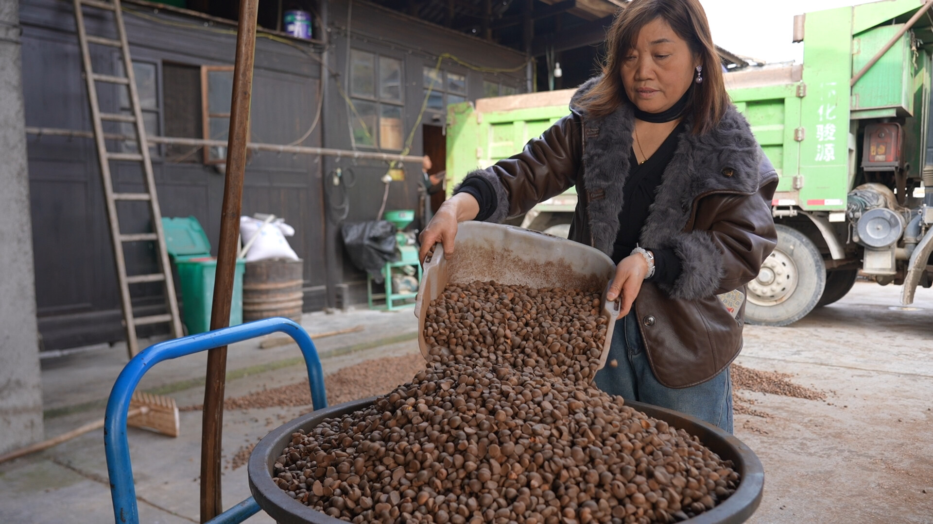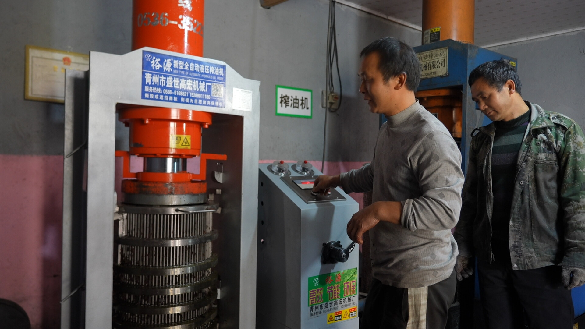 “我们一天能榨七八百斤油,一年总产两万多斤!这茶籽都是纯野生的,榨出来的茶油香气醇厚、口感地道!” 榨油坊负责人彭开德笑着介绍。