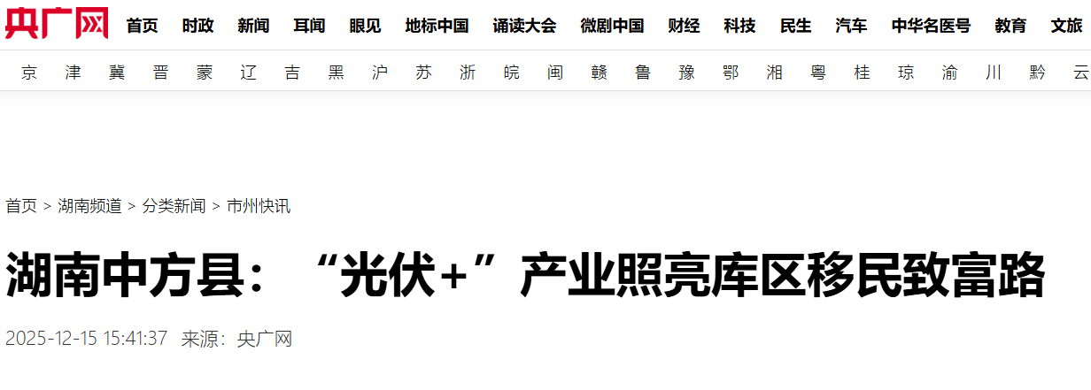 央广网|湖南中方县:“光伏+”产业照亮库区移民致富路