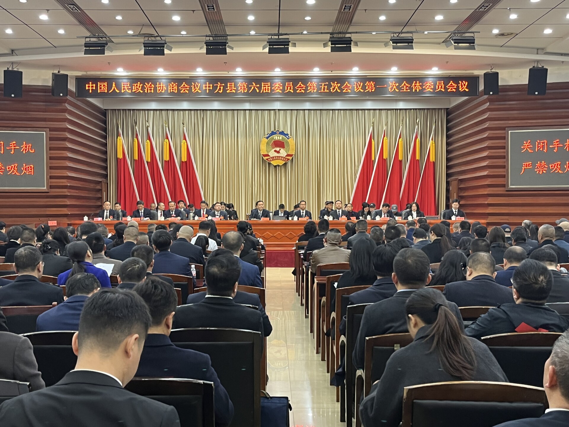 中方融媒12月16日讯(记者:陈攀)12月16日上午,中国人民政治协商会议中方县第六届委员会第五次会议开幕。来自全县各个界别、各条战线的政协委员肩负人民重托、胸怀睿智良策,齐聚一堂,认真履职尽责,积极建言献策,围绕“三高四新”美好蓝图锚定、“五新四城”战略布局实施、“港产城旅”融合发展联动、“鹤中一体化”区域共建协同,为加快建设社会主义现代化新中方贡献政协力量。