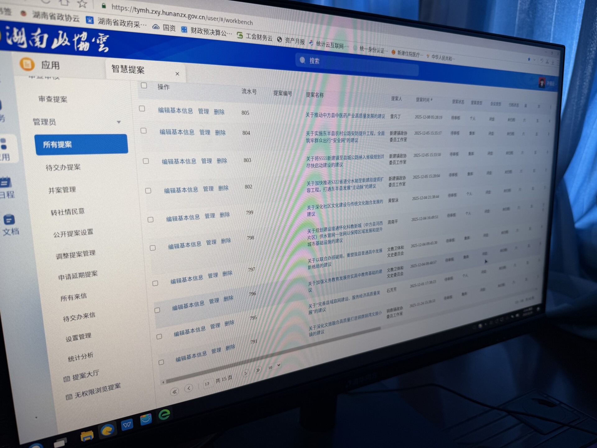 截至12月16日18时,大会共收到提案141件,其中集体提案38件,委员个人提案103件。经提案委员会认真审查,初步审查确定立案129件,占收到提案总数的91.49%。提案内容涵盖了经济建设、政治建设、社会建设、文化建设以及生态文明建设等多个方面。