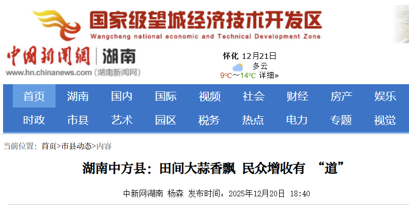 中国新闻网|湖南中方县:田间大蒜香飘 民众增收有 “道”