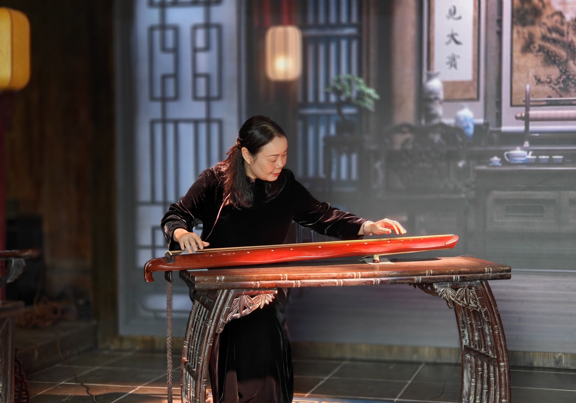 今年9月至11月,怀化学院音乐舞蹈学院的陈丽霞教授在国乐文化体验馆开展了多场专场演奏,便是这一理念的生动实践。陈丽霞深耕古琴教学与研究数十年,被荆坪的文化底蕴深深吸引,多次带领学生团队将课堂搬进古村,她不仅演绎《高山流水》,更现场讲解古琴历史与曲中意境,让观众在琴音中感悟“巍巍乎若泰山,洋洋乎若江河”的深远境界。“古琴中正平和的音律,能调节气血、颐养性情,这与荆坪打造‘国乐养生谷’的初心高度一致。”陈丽霞说。