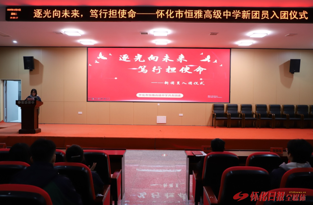 中方融媒12月25日讯 (通讯员:彭佳雯)为强化共青团队伍建设,增强团员使命感,12月23日晚,怀化市恒雅高级中学举行“逐光向未来・笃行担使命”2025年新团员入团仪式。