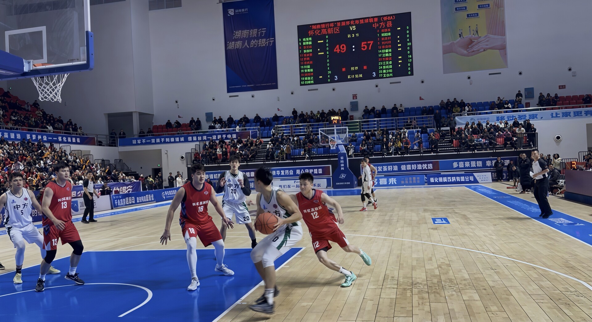中方融媒12月27日讯(记者:陈明)12月26日晚,“湖南银行杯”首届怀化市篮球联赛(怀BA)在怀化市体育中心篮球馆上演精彩对决,中方县代表队客场挑战高新区代表队。