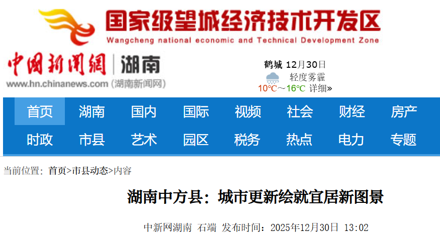 中新网湖南新闻12月30日电 (石端)㵲水之畔,新城焕新。“十四五”期间,湖南怀化市中方县锚定“鹤中一体化”战略,以城市更新为笔,在民生福祉画卷上挥毫泼墨,用实打实的变化书写高质量发展答卷。