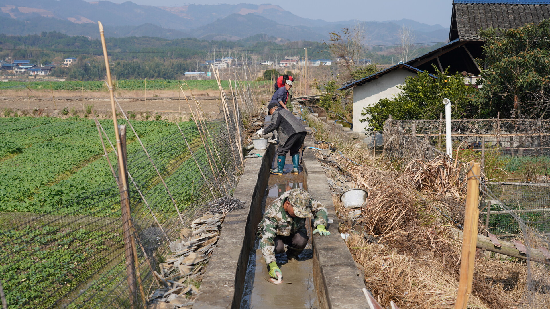 1月6日,在中方县铜鼎镇青市村,村民们挥锹铲土,一条条灌溉渠道在整治后焕发生机,奏响了冬修水利的民生交响曲。