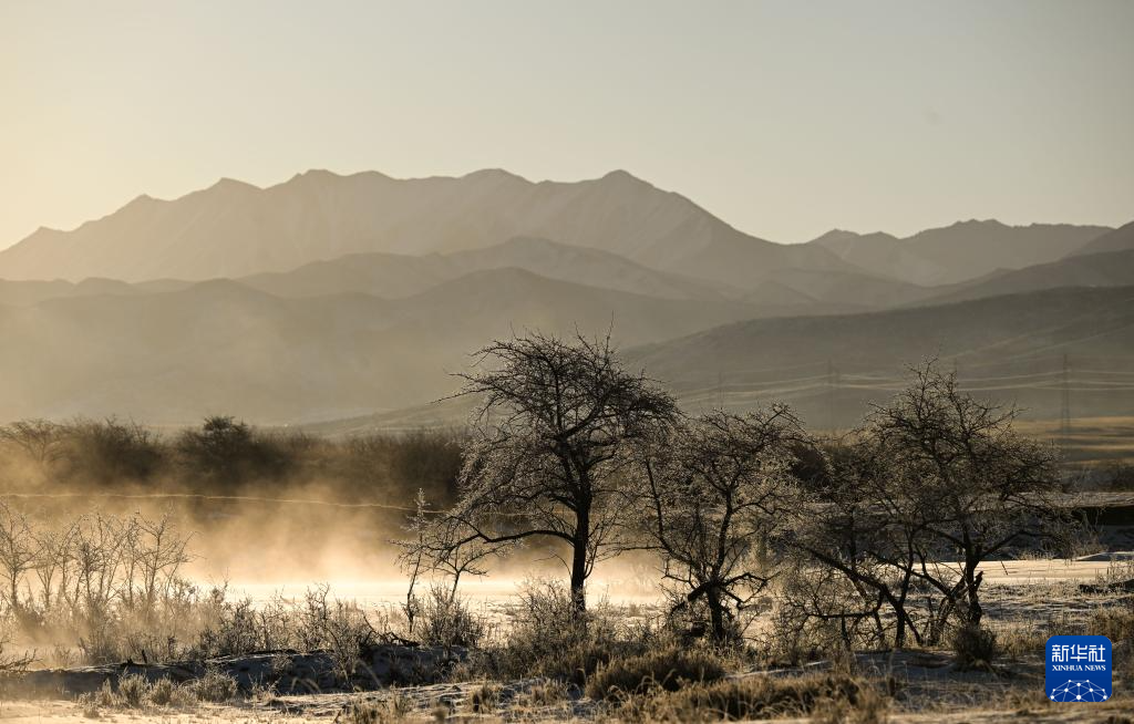 这是1月10日在青海省海北藏族自治州祁连县拍摄的雾凇景观。新华社记者 张龙 摄“寒江晓雾,正冰天、树树凇花云叠”